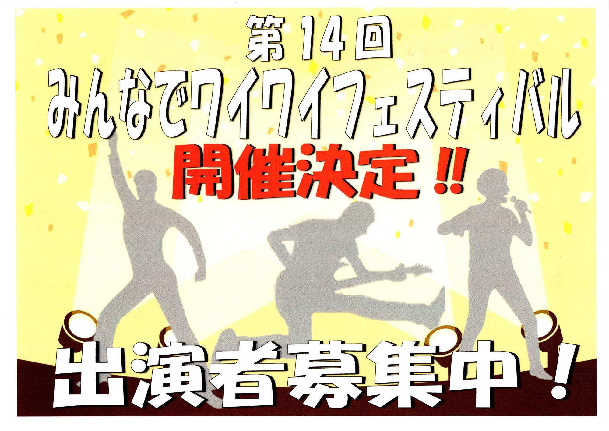 第14回みんなでワイワイフェスティバル募集チラシ(表) (PDFファイル: 529.7KB)
