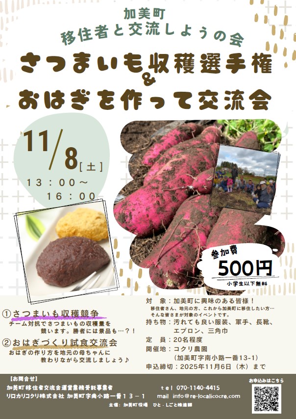加美町移住者と交流しようの会「さつまいも収穫選手権&おはぎを作って交流会」(チラシ)(PDFファイル:4.8MB)