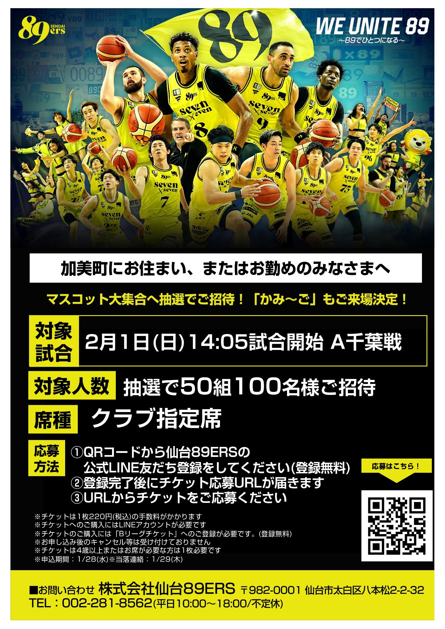 【町民の皆様へ!】仙台89ERSホームゲームへご招待!