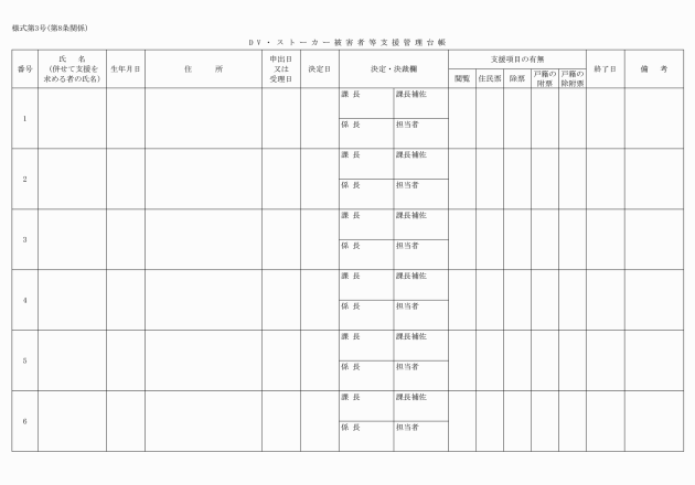 6 申出者は、併せて関係市町村長に対して支援措置を求める場合は、その旨申出書に記載しなければならない。