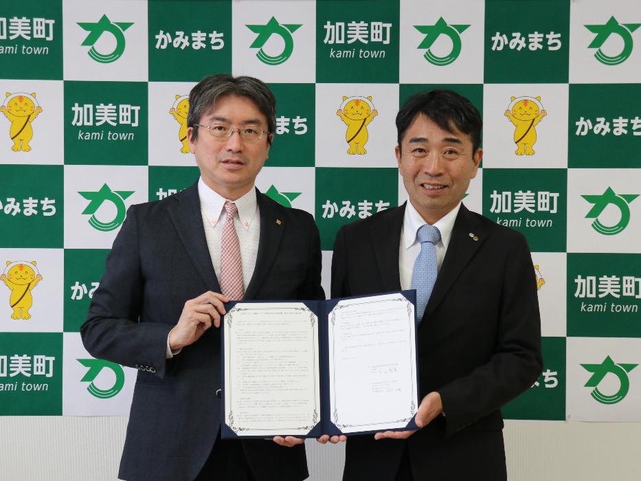 左:株式会社タニタヘルスリンク代表取締役社長 土志田 敬祐様,右:加美町長 石山敬貴