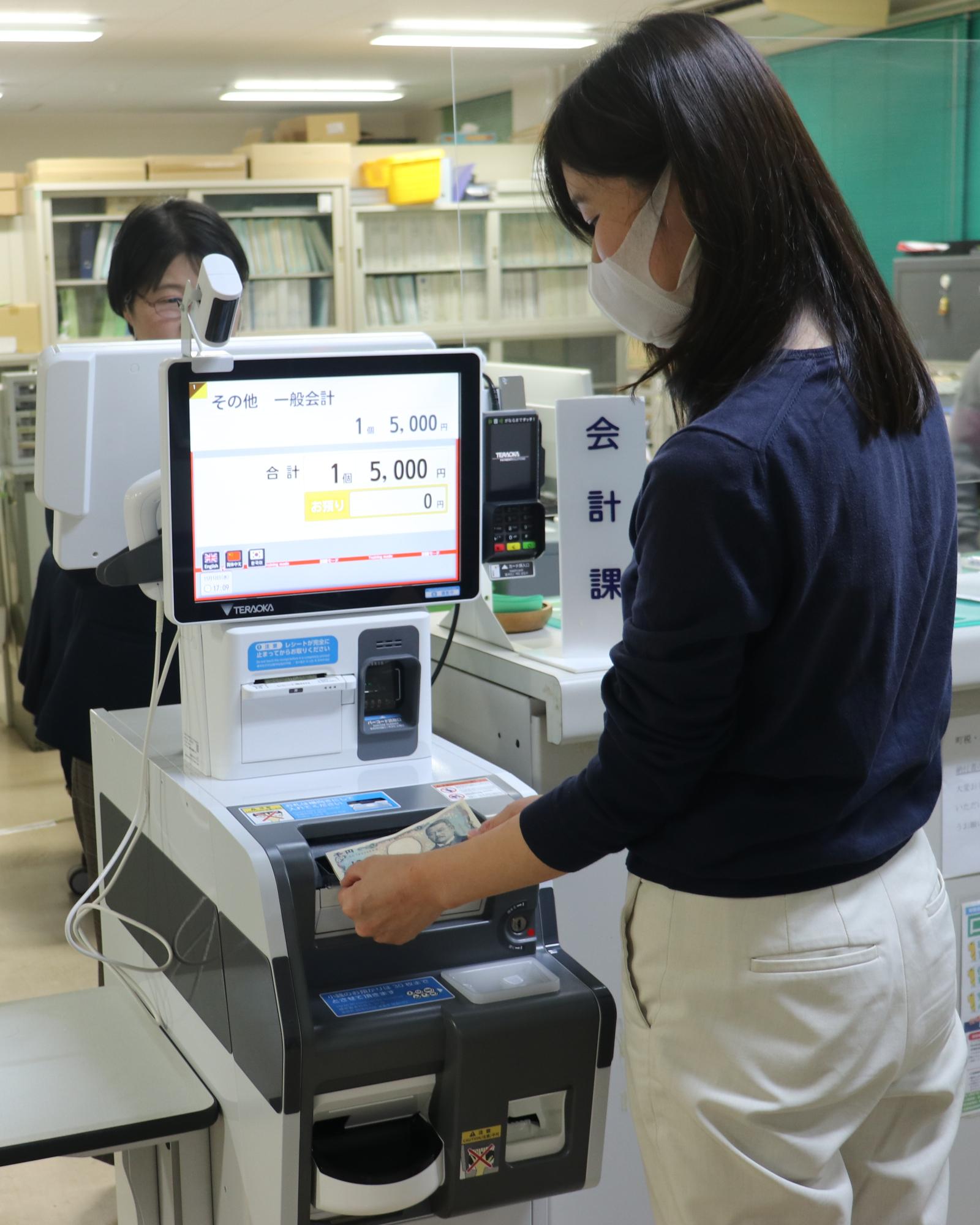 令和7年11月下旬から、会計課窓口にキャッシュレス決済に対応したレジを設置しました。