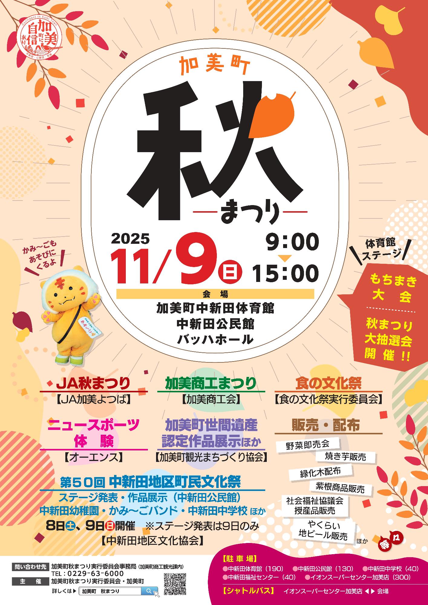 自然の恵みあふれる加美町の秋の一大イベント「加美町秋まつり」が開催されます。
